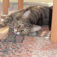Merlin ist sehr zutraulich und verschmust. Leider auch ziemlich verfressen, und seine Vorlieben was das Futter betrifft mag er nur Felix alle Sorten mit Fisch und Purina mit Lachs Geschmack. Es wäre auch wichtig zu wissen, das Merlin leider die Angewohnheit hat das Futter schnell zu verschlingen, so daß er oft erbricht.