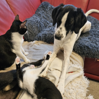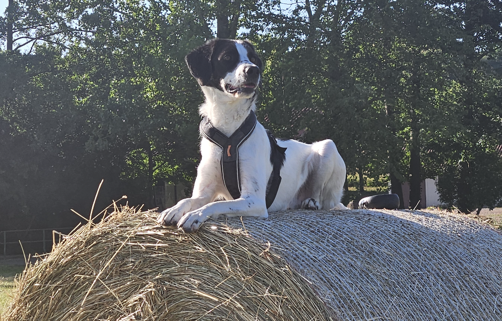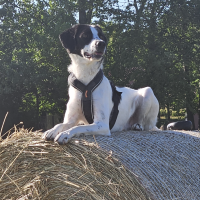 Anchjo ist ein ruhiger Charakter, freundlich zu Menschen und Tier, kuschelt eher kurz, dafür intensiv, zeigt deutlich an, ob er gestreichelt werden möchte, oder nur Kontaktliegen benötigt. Voller Energie, bewegt sich gerne, muss viel laufen, Jagdtriebig, geht an der Leine, Freilauf auf umzäunten Grundstücken. Wird gerne weiter lernen. Er kann auch angeleint am Fahrrad mitlaufen. War schon aus Spaß an Hunderennen beteiligt.